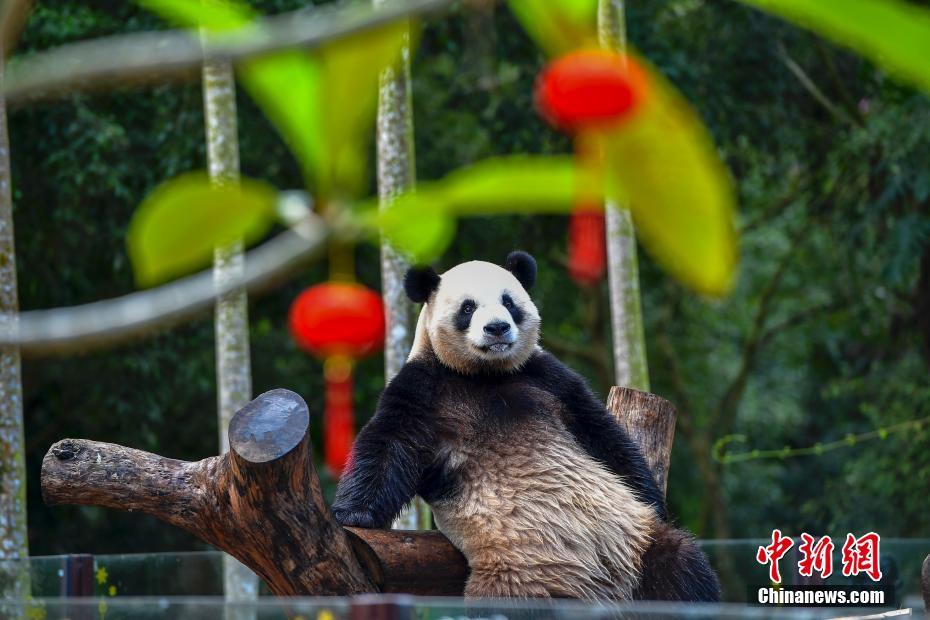 海南大熊猫兄弟“贡贡”“舜舜”吃“饺子”过大年