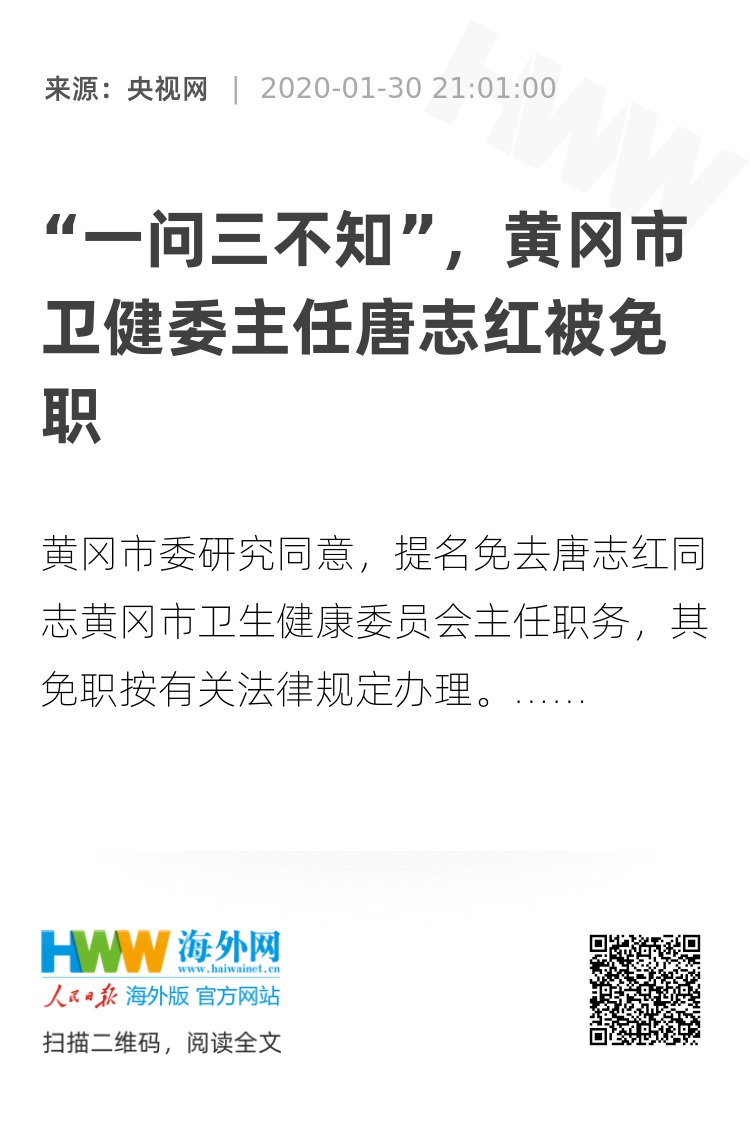 黄冈市委研究同意,提名免去唐志红同志黄冈市卫生健康委员会主任职务,其免职按有关法律规定办理。