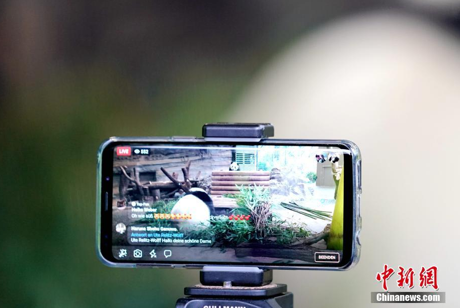 动物园工作人员正使用手机进行直播。中新社记者 彭大伟 摄