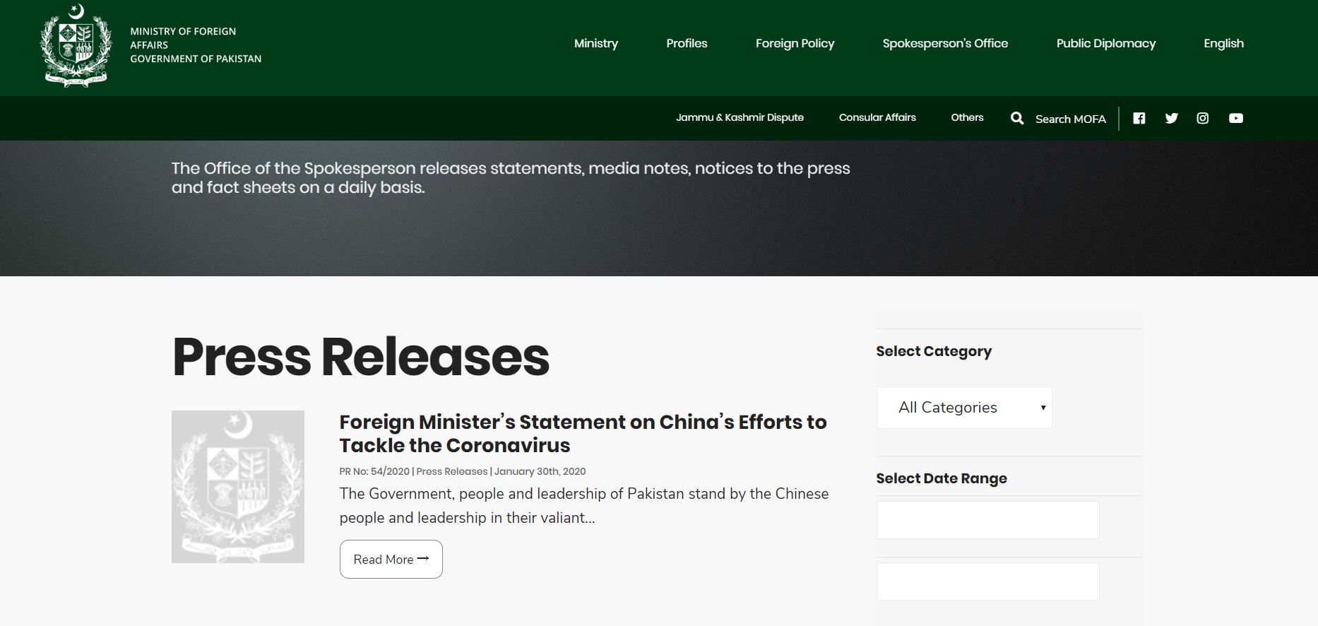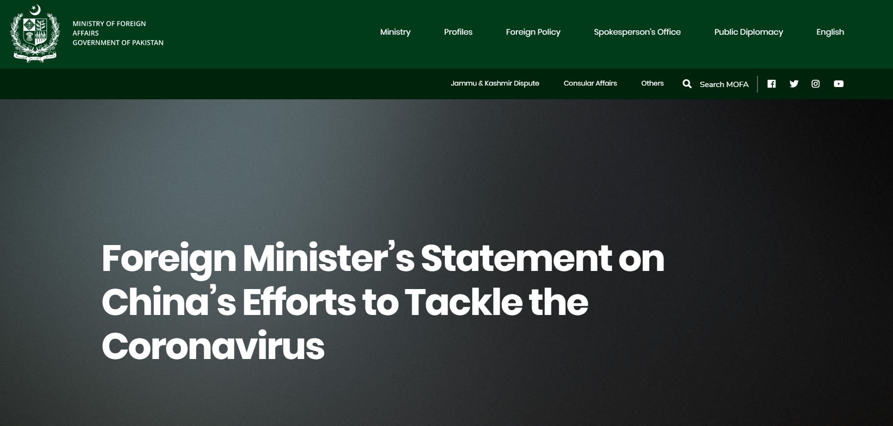 当地时间1月30日,巴基斯坦外交部部长在官方网站上就中国应对新型冠状病毒的努力发表声明。声明说:当中国人民和领导人为控制新型冠状病毒作出英勇的努力时,巴基斯坦政府的人民和领导人和他们在一起,并支持中国在这方面采取的措施。