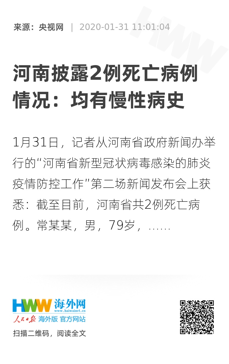原标题:《河南披露两例死亡病例情况 两人均有慢性病史》