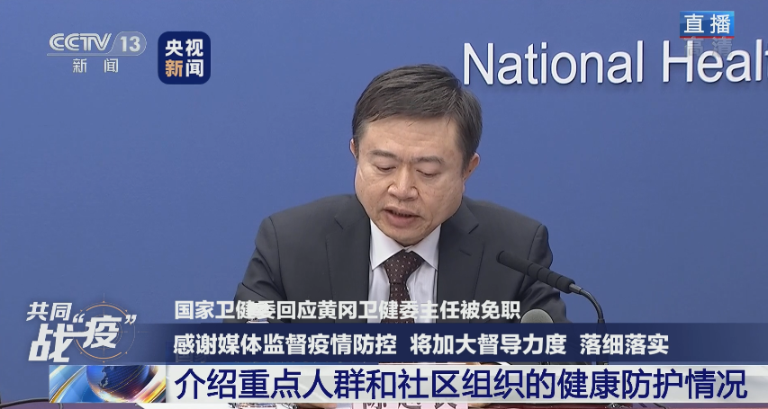 国家卫健委回应黄冈卫健委主任被免职:将加大督导力度