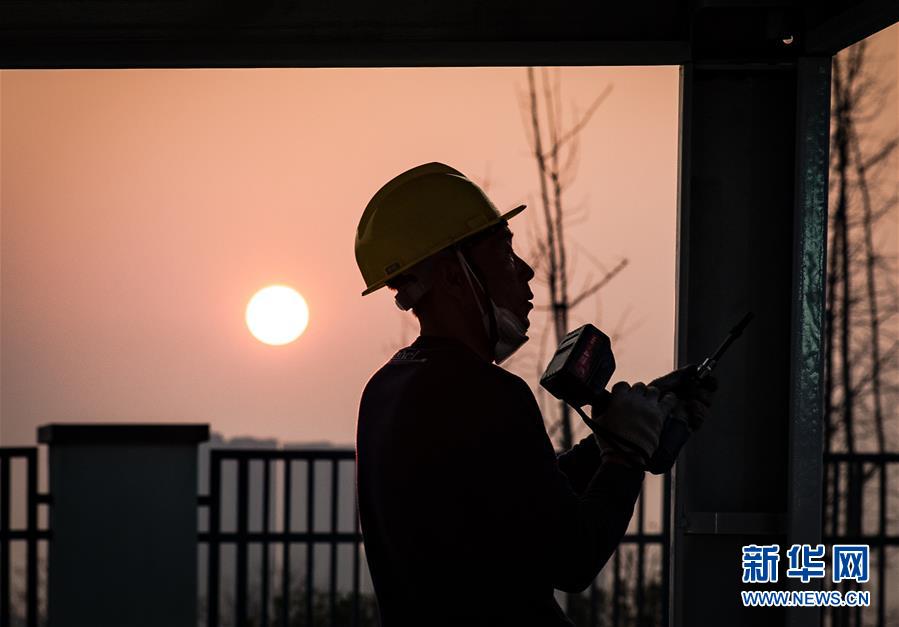 1月30日,在武汉雷神山医院建设工地,来自中建三局的工人在加紧施工。新华社记者 肖艺九 摄