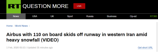 伊朗迈赫尔通讯社援引伊朗民航组织一名官员的话说,当地时间2月1日早些时候,一架客机从伊朗首都德黑兰梅赫拉巴德机场起飞,机上载102名乘客和8名机组人员。该客机晚些时候在该国西部克尔曼沙阿的机场着陆时冲出跑道。