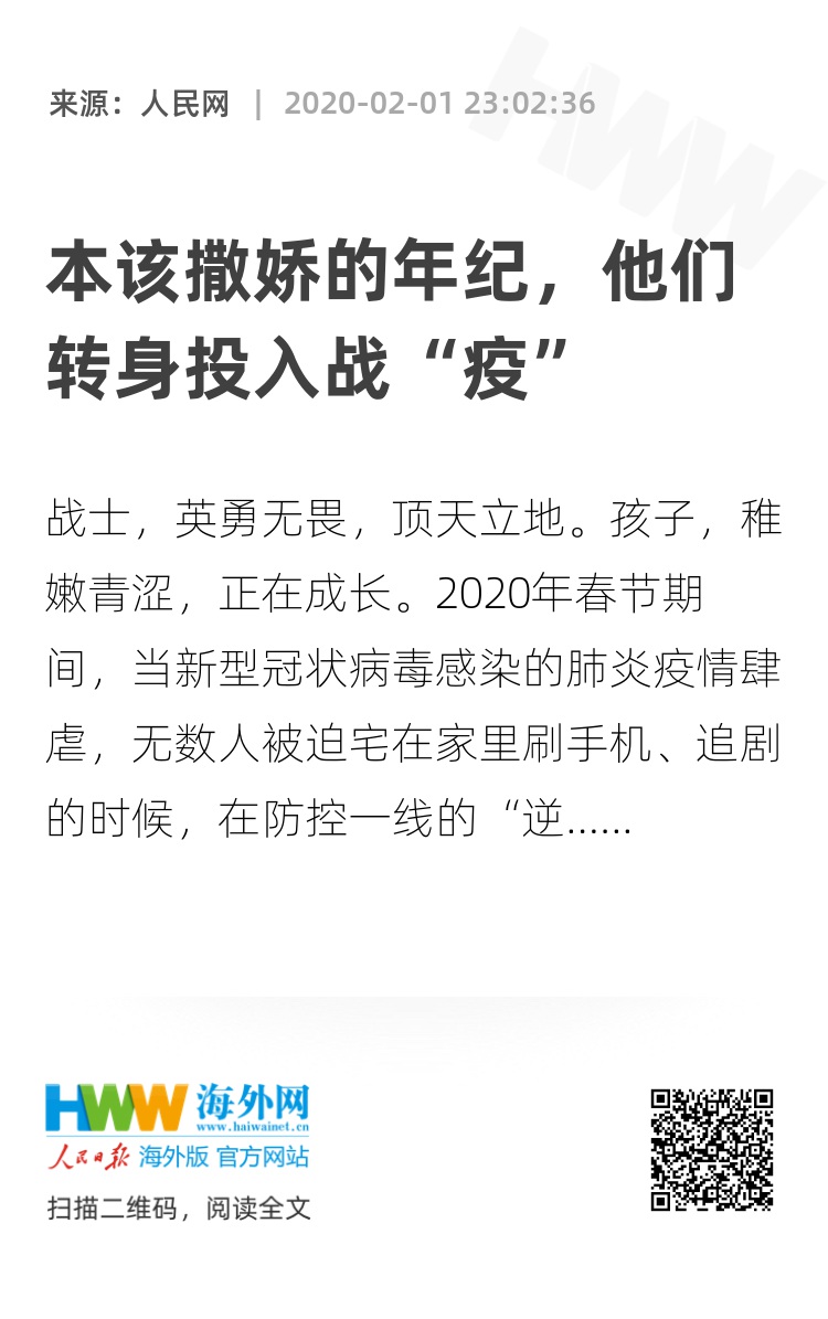 “虽然我们年轻,但我们可以让祖国放心。”和他们一道出列并向疫情霸气宣战的太多太多: