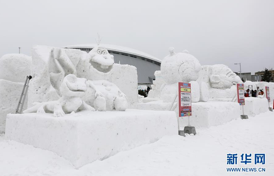 这是1月31日在日本札幌的活动现场拍摄的市民制作的雪雕。新华社记者 杜潇逸 摄