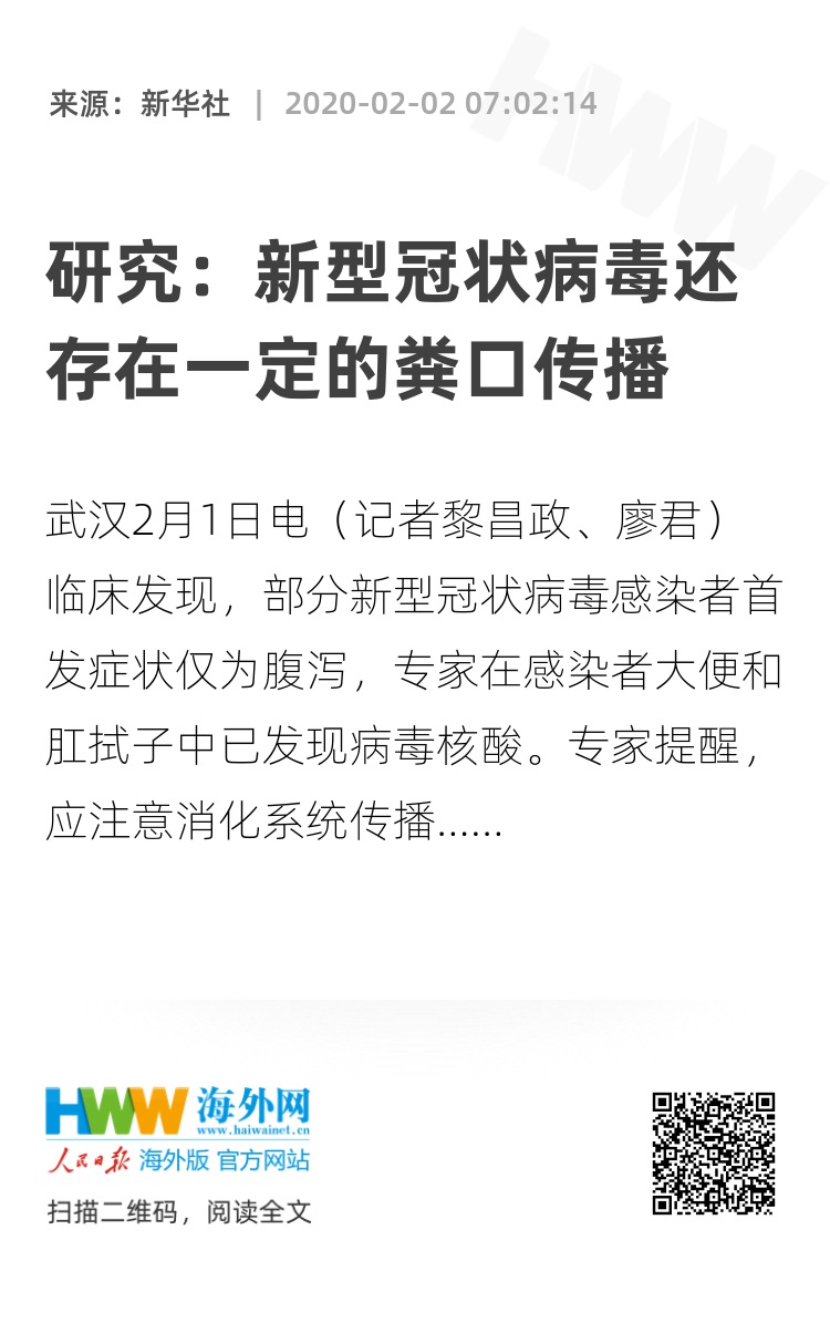 原标题:《专家提醒:注意消化系统传播新型冠状病毒的风险》