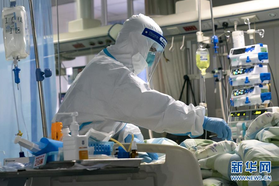 医护人员在武汉大学中南医院病房内工作(1月24日摄)。新华社发