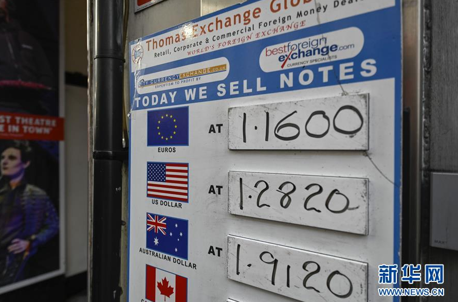 这是2月1日在英国伦敦一处货币兑换点拍摄的货币兑换标价。新华社发(史蒂芬·程摄)