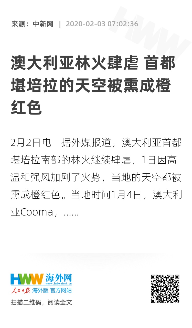 因为担心林火远超出消防员得以控制的范围,堪培拉日前已宣布当地进入紧急状态。这是堪培拉近20年来首次进入紧急状态。