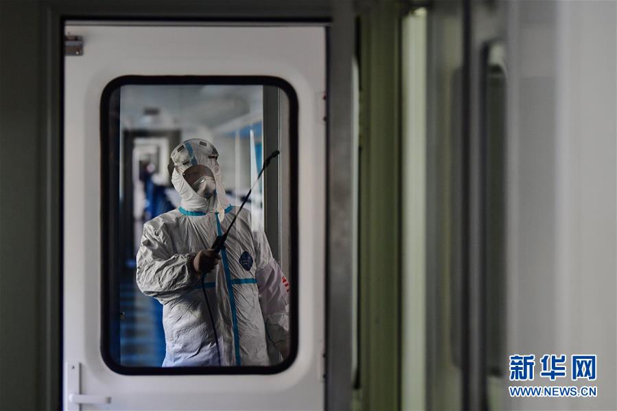 2月3日,中国铁路兰州局集团有限公司疾病预防控制所工作人员徐国祥在K9668次列车上进行消毒作业。 为做好新型冠状病毒感染的肺炎疫情防控工作,中国铁路兰州局集团有限公司疾病预防控制所的工作人员近期全天候轮班上岗,对兰州火车站的列车开展消毒防疫工作,确保列车重点部位经过严格细致的消毒。 新华社记者 陈斌 摄