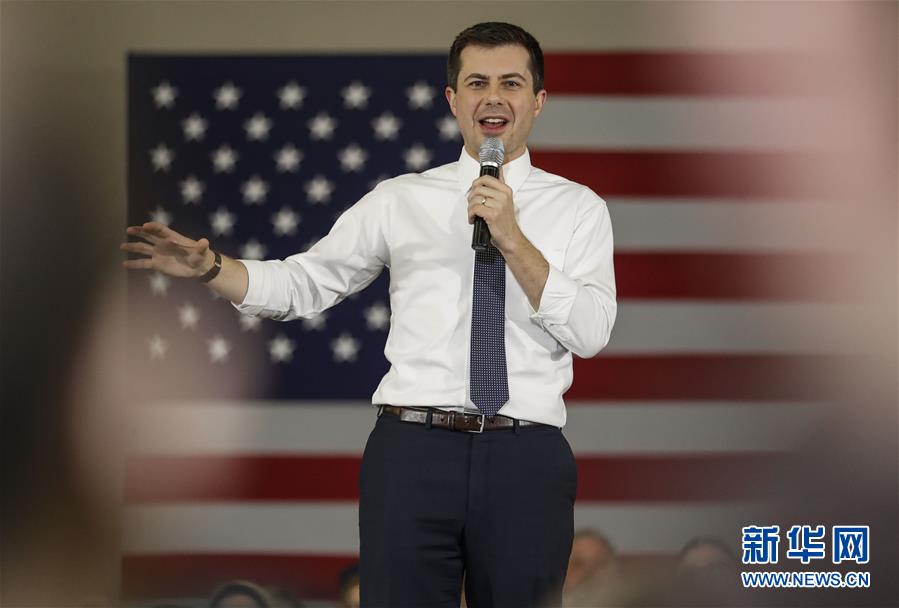 2月1日,在美国艾奥瓦州锡达拉皮兹,美国民主党竞选人、印第安纳州南本德市前市长皮特·布蒂吉格在竞选活动上讲话。 美国中部时间2月3日晚7时起,位于美国中西部的艾奥瓦州将在逾1600个选区举行民主党和共和党总统选举首场党内预选,正式拉开2020年美国总统选举序幕。 新华社发(乔尔·莱纳摄)