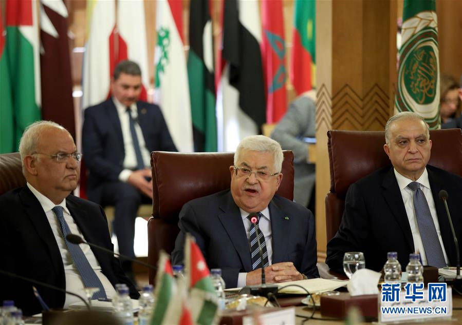 2月1日,在埃及开罗,巴勒斯坦总统阿巴斯(中)出席阿盟紧急外长会议。阿巴斯在会上表示,巴方拒绝接受美国政府提出的“中东和平新计划”,并将断绝与以色列和美国的一切关系。新华社发(艾哈迈德·戈马摄)