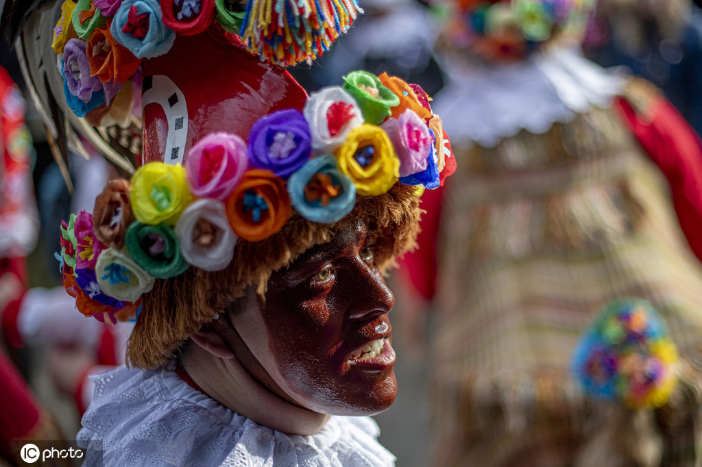 当地时间2020年2月1日,捷克布拉格,一年一度的斯拉夫人传统狂欢节举行。在狂欢节游行中,人们戴上面具,穿上盛装,装扮成各种角色,载歌载舞,共同享用香肠啤酒等美食,大快朵颐。未来几天,城市各处还会组织游行、音乐表演等各种露天庆祝活动。