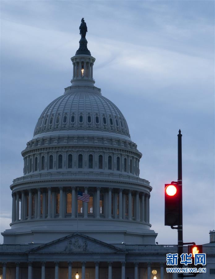 这是2月3日在美国华盛顿拍摄的国会大厦。 正在审理美国总统特朗普弹劾案的美国国会参议院3日听取控辩双方总结陈述。参议院将于5日就弹劾条款举行投票,以确定是否将特朗普定罪并罢免。 新华社记者 刘杰 摄