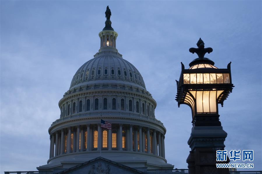 这是2月3日在美国华盛顿拍摄的国会大厦。 正在审理美国总统特朗普弹劾案的美国国会参议院3日听取控辩双方总结陈述。参议院将于5日就弹劾条款举行投票,以确定是否将特朗普定罪并罢免。 新华社记者 刘杰 摄