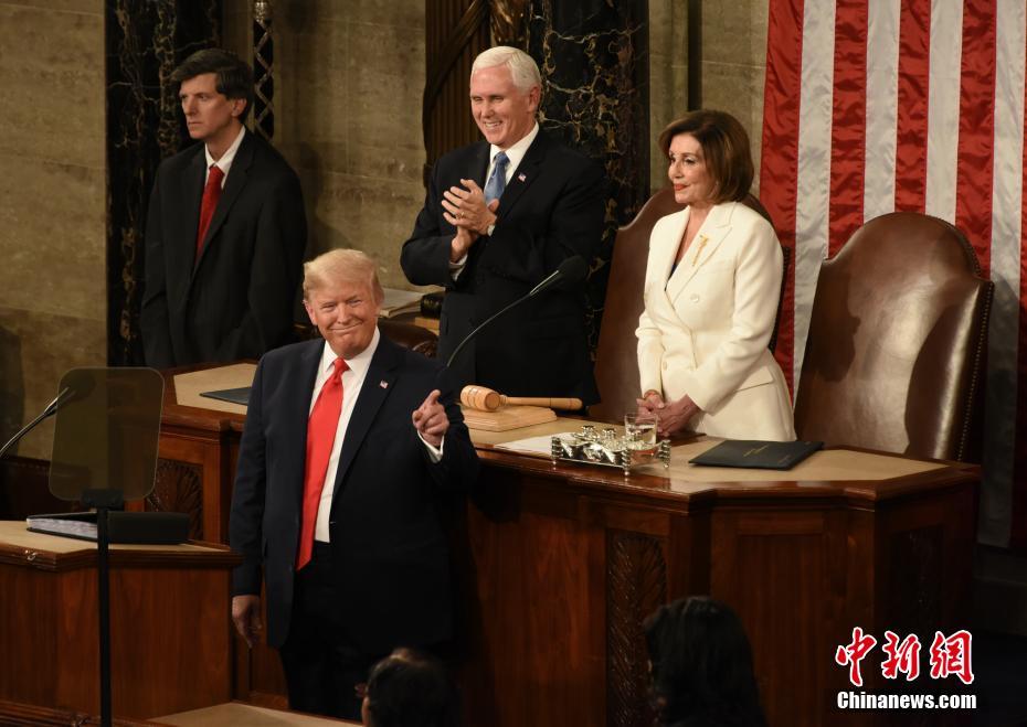 当地时间2月4日晚,美国总统特朗普在国会众议院发表国情咨文。美国参议院将于5日就针对特朗普的弹劾条款进行最终表决。中新社记者 陈孟统 摄