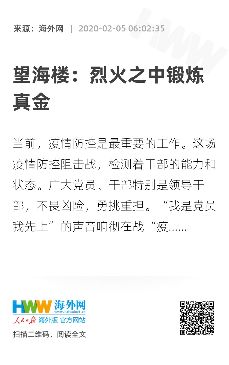 《 人民日报海外版 》( 2020年02月05日 第 01 版)