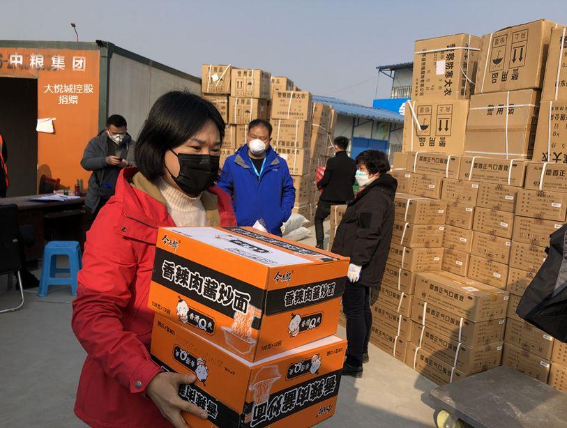 △中粮集团旗下大悦城控股党员先锋队向雷神山项目捐赠方便食品