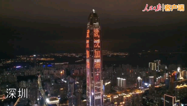 元宵战疫,团圆有时!今晚,元宵夜,全国多地地标亮灯,为武汉加油。图为深圳夜景。(来源:人民日报客户端综合)
