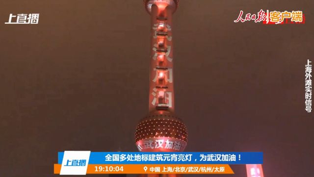 元宵战疫,团圆有时!今晚,元宵夜,全国多地地标亮灯,为武汉加油。图为上海夜景。(来源:人民日报客户端综合)