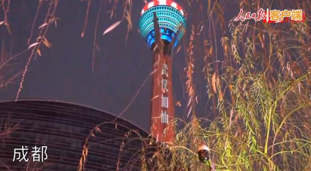 元宵战疫,团圆有时!今晚,元宵夜,全国多地地标亮灯,为武汉加油。图为成都夜景。(来源:人民日报客户端综合)