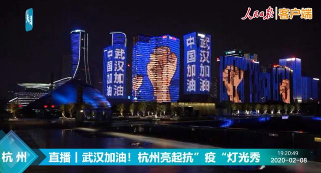 元宵战疫,团圆有时!今晚,元宵夜,全国多地地标亮灯,为武汉加油。图为杭州夜景。(来源:人民日报客户端综合)