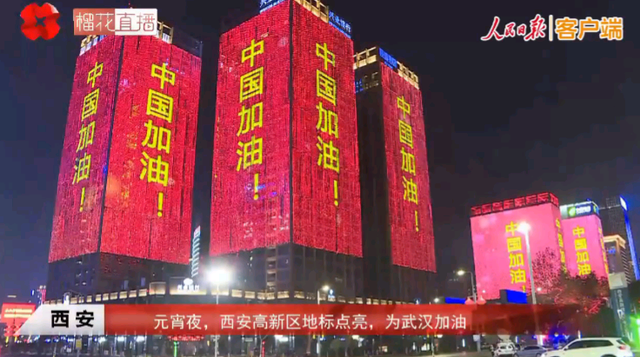 元宵战疫,团圆有时!今晚,元宵夜,全国多地地标亮灯,为武汉加油。图为西安夜景。(来源:人民日报客户端综合)