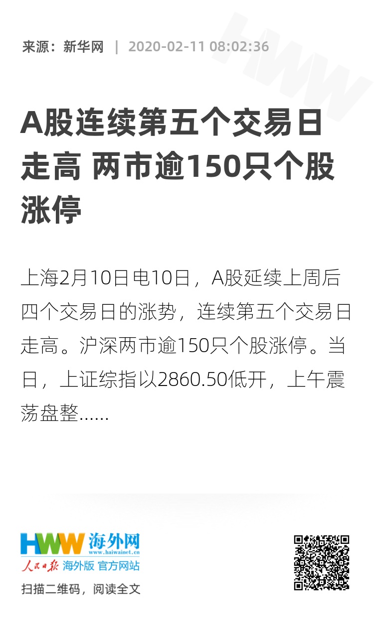 新华社上海2月10日电10日,A股延续上周后四个交易日的涨势,连续第五个交易日走高。沪深两市逾150只个股涨停。