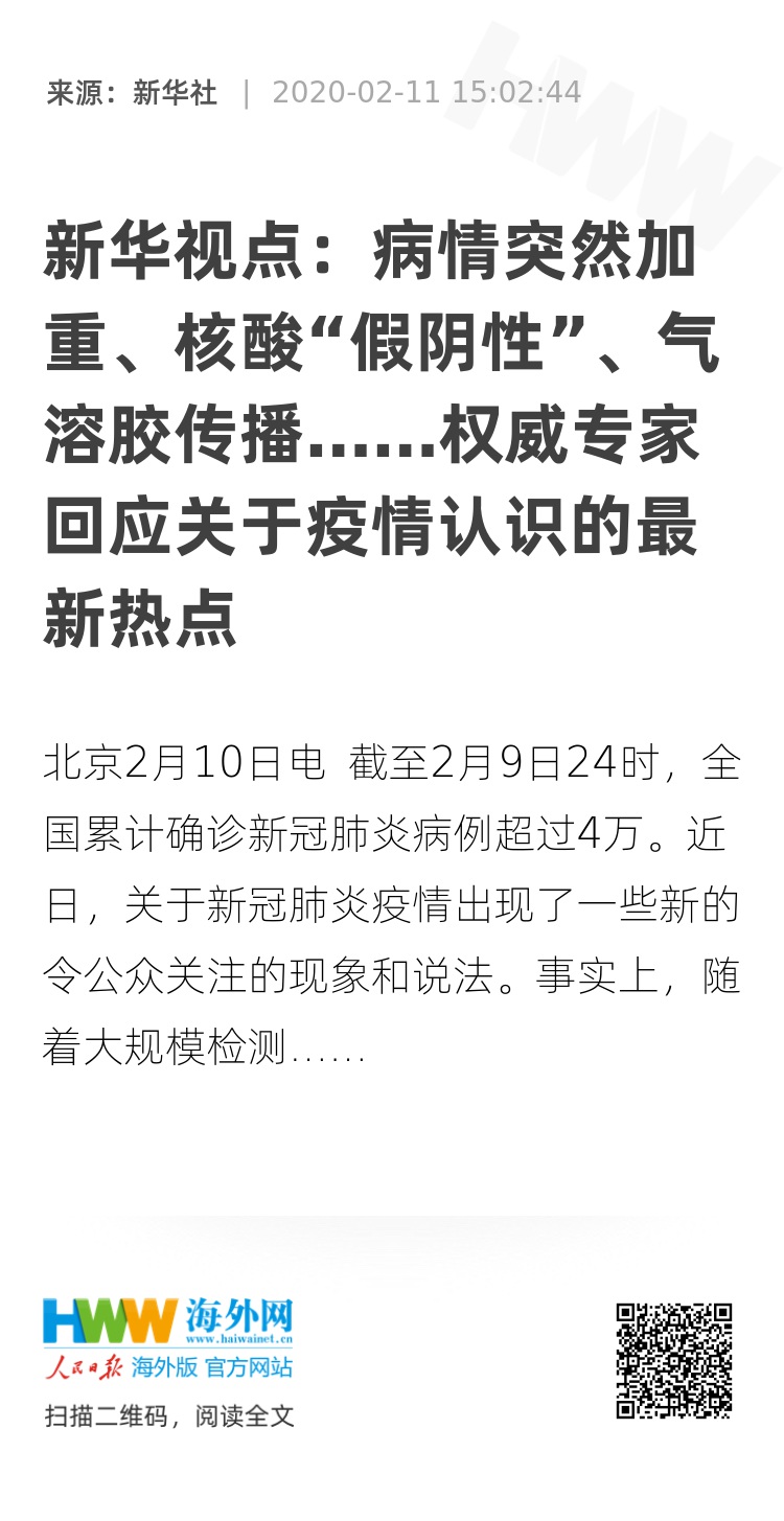 新华视点:病情突然加重、核酸“假阴性”、气溶胶传播……权威专家回应关于疫情认识的最新热点