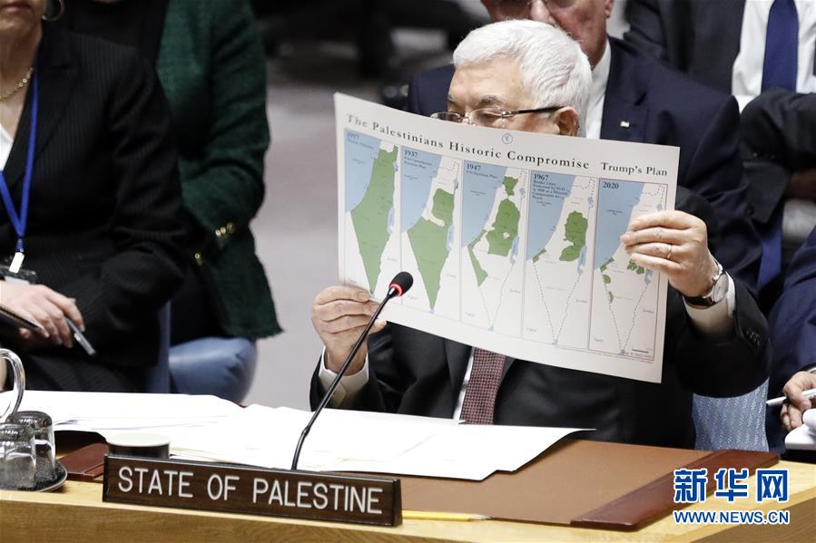 巴勒斯坦总统阿巴斯11日在联合国安理会中东局势和巴勒斯坦问题公开会上发表讲话,坚决拒绝美国“中东和平新计划”,但同时表示愿意与以色列展开谈判。 新华社记者 李木子 摄