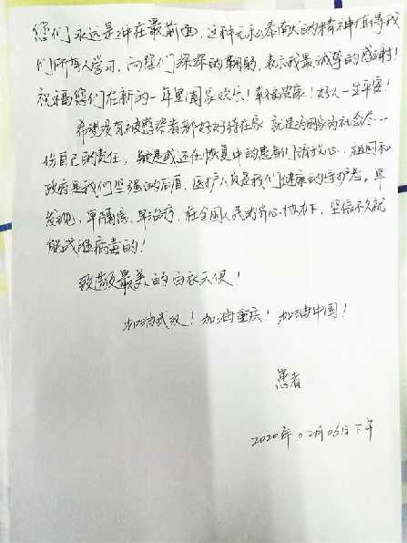 “医护人员对我很关心,不时还和我聊天,说我身体好,病状也轻,肯定能挺过去……”陈强说,照顾他的医护人员很细心,他非常感动,当时就想,自己康复过后一定要来感谢他们。可到时候找谁感谢呢?“他们都穿着隔离服,连长什么样子我都不知道。”