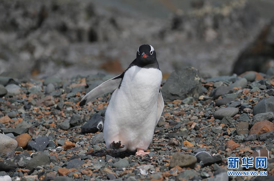 长城站站区里的企鹅(2月8日摄)。新华社记者 刘诗平 摄