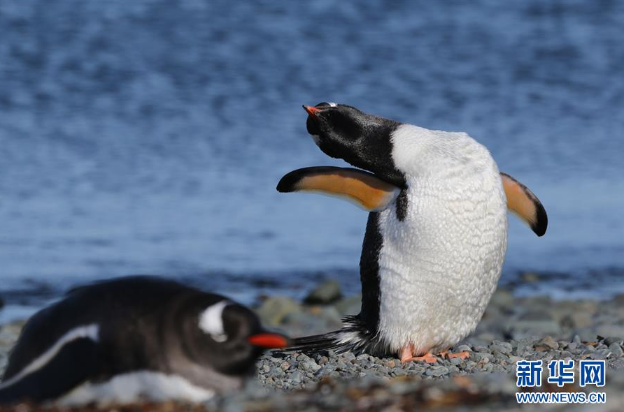 长城站站区里的企鹅(2月9日摄)。新华社记者 刘诗平 摄