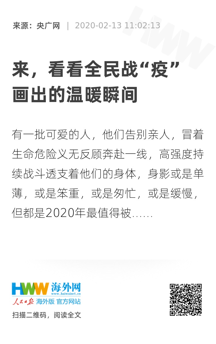 有一批可爱的人,他们告别亲人,冒着生命危险义无反顾奔赴一线,高强度持续战斗透支着他们的身体,身影或是单薄,或是笨重,或是匆忙,或是缓慢,但都是2020年最值得被标注的画面! 同时,有这样一群热心人,他们用艺术的力量,记录下战疫英雄们抗击磨难的无畏与坚韧、记录下每个人心中的爱,致敬!