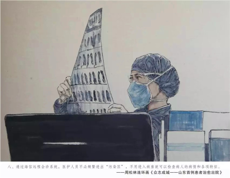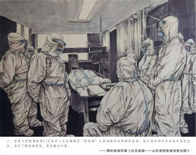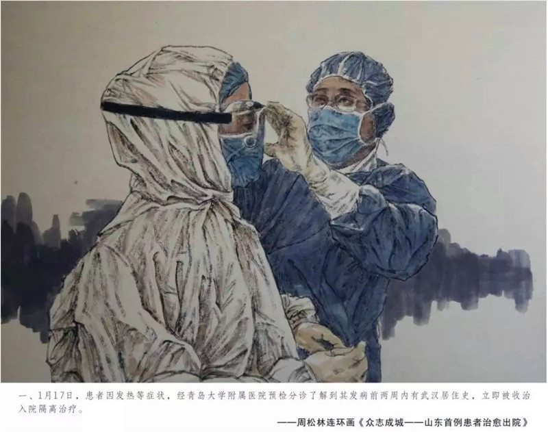 眼下新型冠状病毒感染的肺炎疫情防控进入关键期,一线医护人员的奋战精神感染了很多人。尤其山东首例患者治愈出院,更是鼓舞人心。受此感召,青岛大学周松林副教授,近日用两天一夜的时间,不休息不间断的创作了连环画《众志成城——山东首例患者治愈出院》,记录下山东抗击疫情中的这一重要事件。