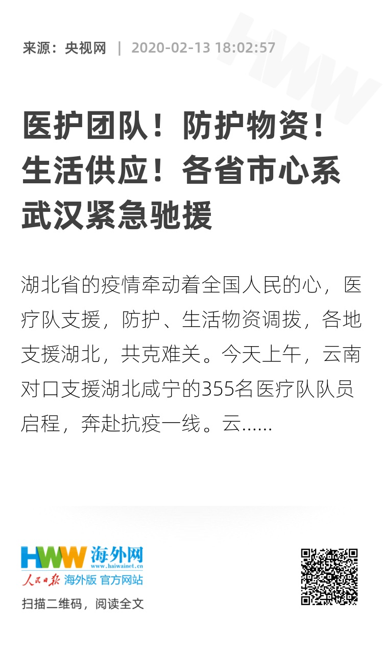 湖北省的疫情牵动着全国人民的心,医疗队支援,防护、生活物资调拨,各地支援湖北,共克难关。