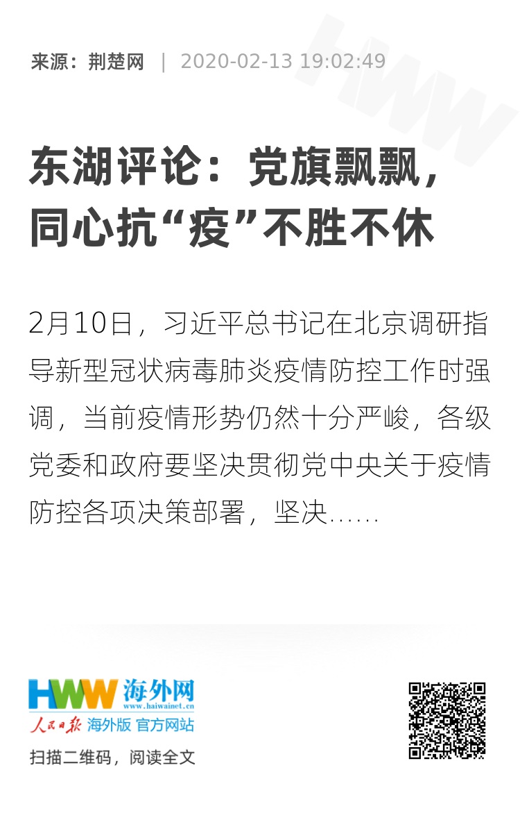 “初心”耀耀,党旗飘飘,万众一心舍生去“疫”,不胜不休。沧海横流,方显英雄本色。危难时刻,党旗迎风飘扬,凝聚人心。我们的信心就源自一线高高飘扬的党旗,源于鞠躬尽瘁的医护人员,源于奋力奔走奉献的志愿者,源自所有抗击疫情的人们。在这场抗“疫”阻击战中,我们有信心、有能力赢得最终的胜利。我们相信,在党的带领下,在全国人民的支持下,我们只要保持好以万众一心、同心同德、众志成城、不胜不休的姿态,就必然能坚决打赢这场疫情防控的人民战争。