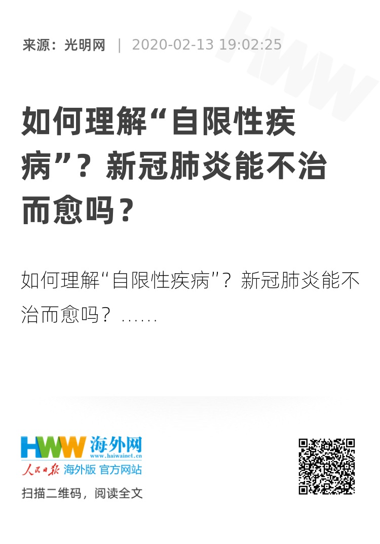 如何理解“自限性疾病”?新冠肺炎能不治而愈吗?
