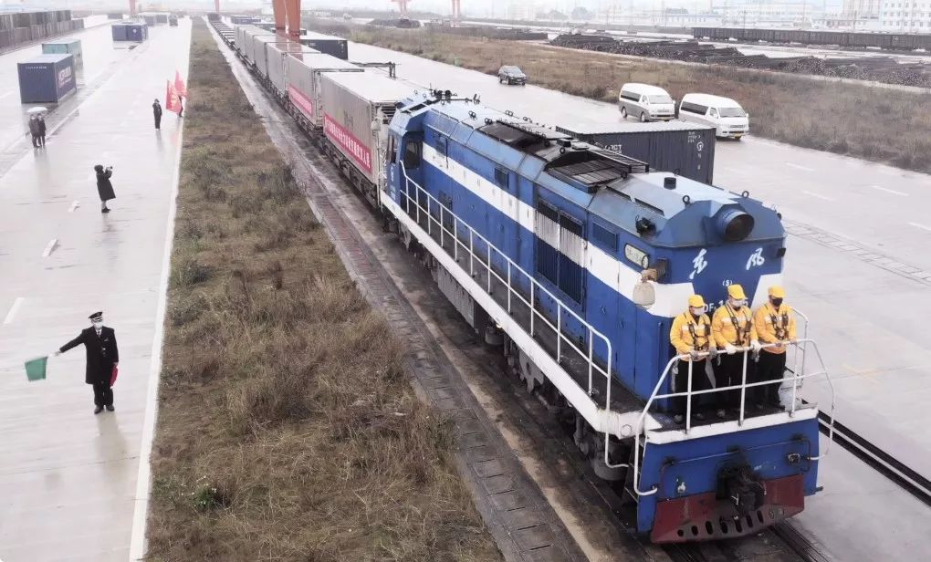 “热干面”加油,螺蛳粉来了!载有螺蛳粉、果蔬等189吨民生物资的21020次冷链集装箱专列从广西南宁国际铁路港发出顺利抵达了湖北咸宁站