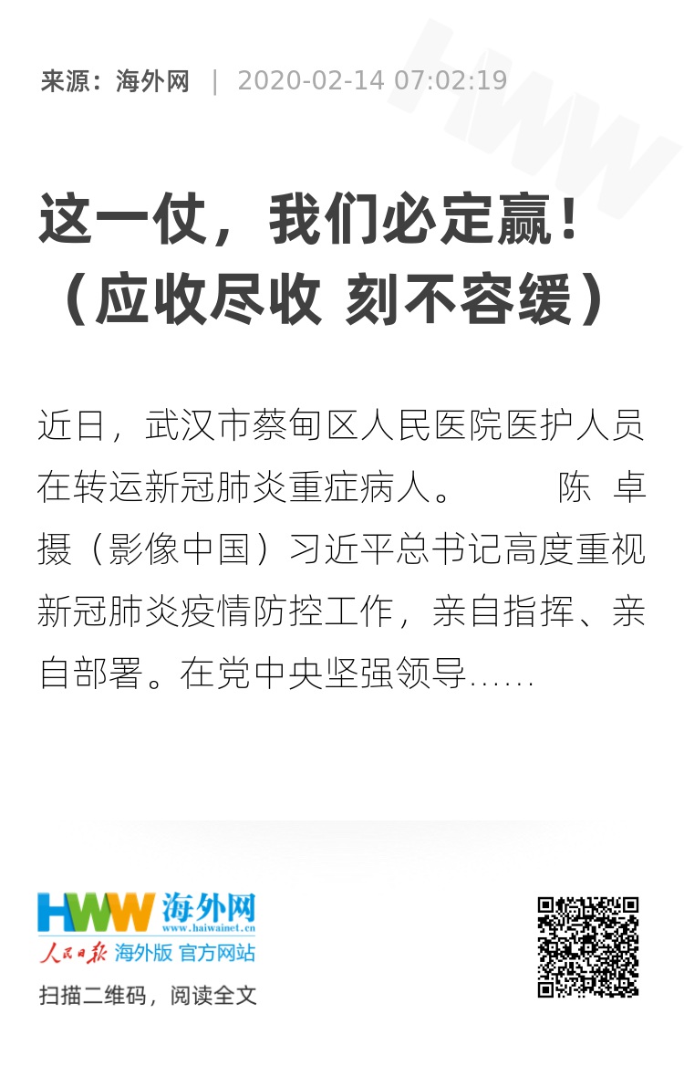 习近平总书记高度重视新冠肺炎疫情防控工作,亲自指挥、亲自部署。在党中央坚强领导下,全国人民团结一心、众志成城,坚决打赢疫情防控的人民战争、总体战、阻击战。连日来,奋战在武汉一线的本报前方记者,深入一线,实地采访,进医院、入社区,捕捉到很多共同战“疫”的感人镜头。