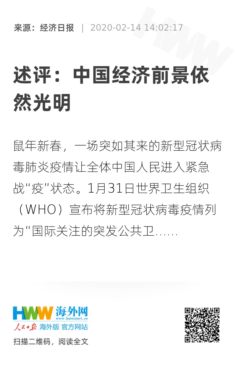 鼠年新春,一场突如其来的新型冠状病毒肺炎疫情让全体中国人民进入紧急战“疫”状态。1月31日世界卫生组织(WHO)宣布将新型冠状病毒疫情列为“国际关注的突发公共卫生事件(PHEIC)”,担忧疫情对中国经济产生不利影响的声音骤然增多。疫情之下,中国经济将会走向何方?多数经济学家表示,长期来看,中国经济内生动力足,财政和货币空间较大,长期向好趋势不变。