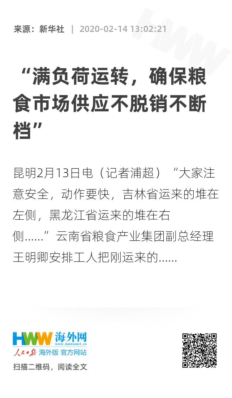 “受疫情影响,春节期间,云南部分地方一些超市、小卖部的大米销售一空。云南省粮食和物资储备局紧急安排我们增加供应稳定市场,大年初三开始我们就向市场增加供应,每天供应量在300吨以上,目前已投放了4000多吨,市场上大米紧张情况已得到解决。正月初七开始我们协调东北大米厂家直接发运成品大米,现在已运来2000多吨,最近几天每天运来的都有400吨以上。”王明卿说,为了确保供应,他们的生产车间也于正月初七复工复产。