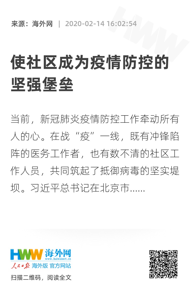 习近平总书记在北京市调研指导新冠肺炎疫情防控工作时强调,全国都要充分发挥社区在疫情防控中的阻击作用,把防控力量向社区下沉,加强社区各项防控措施的落实,使所有社区成为疫情防控的坚强堡垒。与医务人员主要负责救治患者的任务不同,社区工作人员的职责和任务相对繁琐和分散。从守路口、测体温、轮班巡逻,到逐户排查、普及防控知识、消毒杀菌……自疫情发生以来,广大基层干部、普通志愿者、物业工作者,为阻断病毒传播作出了重要贡献。这启示我们,要更加重视社区在疫情防控中的基础性作用,并通过相应的制度和政策为完善社区防控体系提供支持和保障。