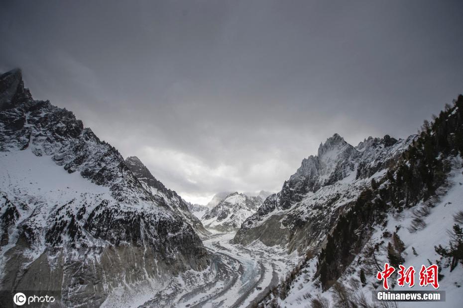 当地时间2020年2月13日,法国霞慕尼附近,实拍勃朗峰冰川。