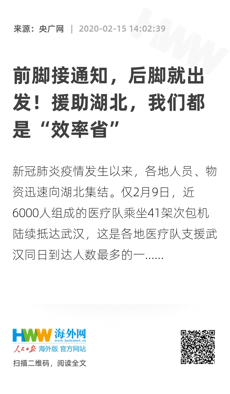 朱岷:“在我们得到了国家的文件来的第一时间,实际上我们的防治的工作方案就已经基本拿出了,我们就在昨天晚上已经连夜讨论、制定,今天就报给省委省政府,按照他们的要求,我们选了一个精锐部队,在我们委管的、包括省属的这样的十几家的直属单位、几乎涵盖了我们的所有的地市,都有人参加,我们是根据他的专业需求,(派出了)100名医生,200名护士和4名防控人员这样的一个需求的清单。”