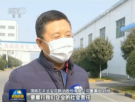 渭南石羊长安花粮油股份有限公司董事长 刘恒:要履行企业的社会责任,我们承担着老百姓的“菜篮子”工程,一定要保障在整个的疫情期间,食用油不断供,不涨价。