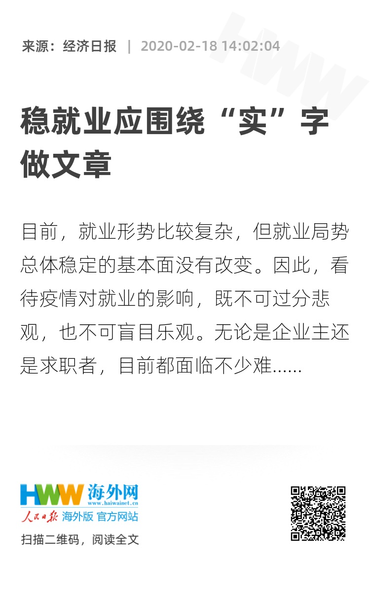 疫情之下,中小企业十分关注政府部门对企业经营困境的解决方案。劳动者也在挂念,在特殊时期如何尽快返岗复工、找到合适的工作。企业主和劳动者关心的问题,最终指向两个字——就业。