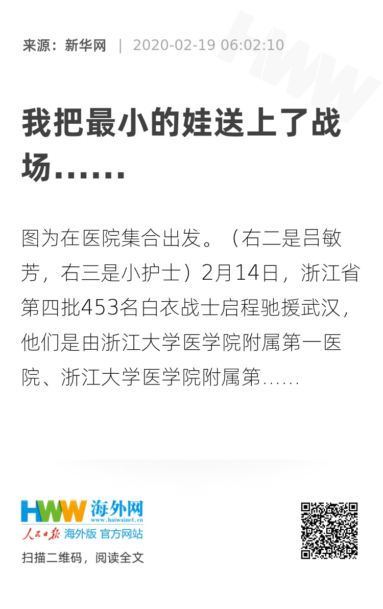 2月14日早上6:40,吕敏芳早早赶到医院集合点去送行,看着年轻姑娘跟随医疗队远去,在后方遥望的她百感交集,写下了这首诗。“他们是用年轻的身躯,担负起这个时代的重任。”