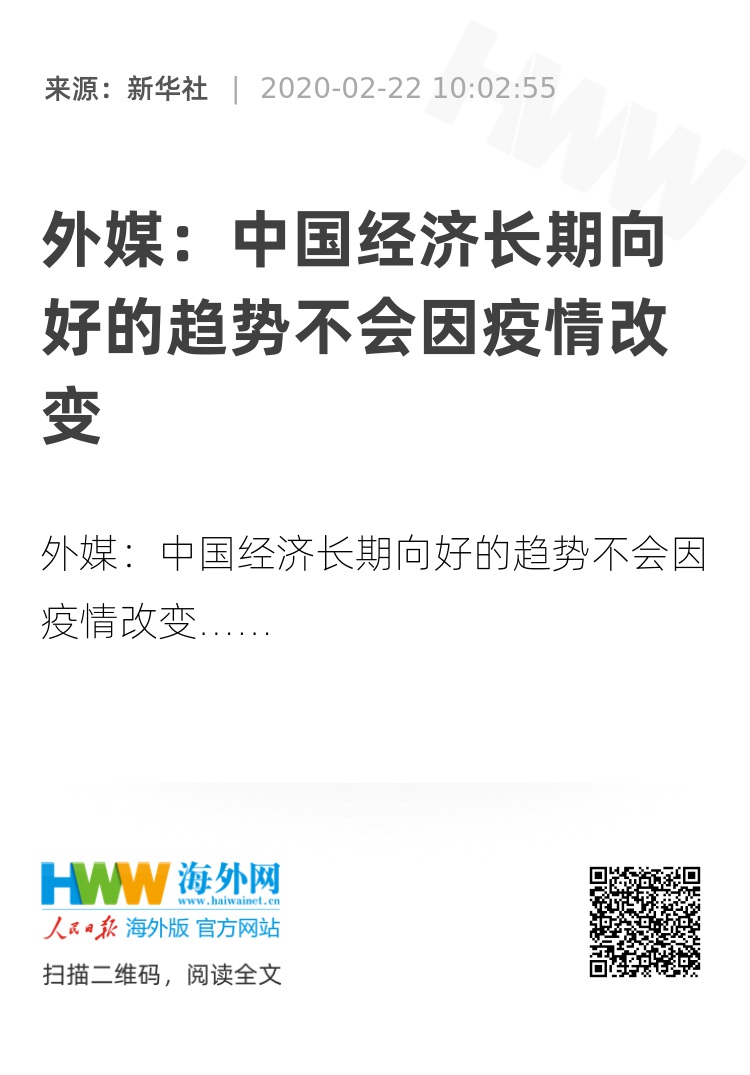 外媒:中国经济长期向好的趋势不会因疫情改变